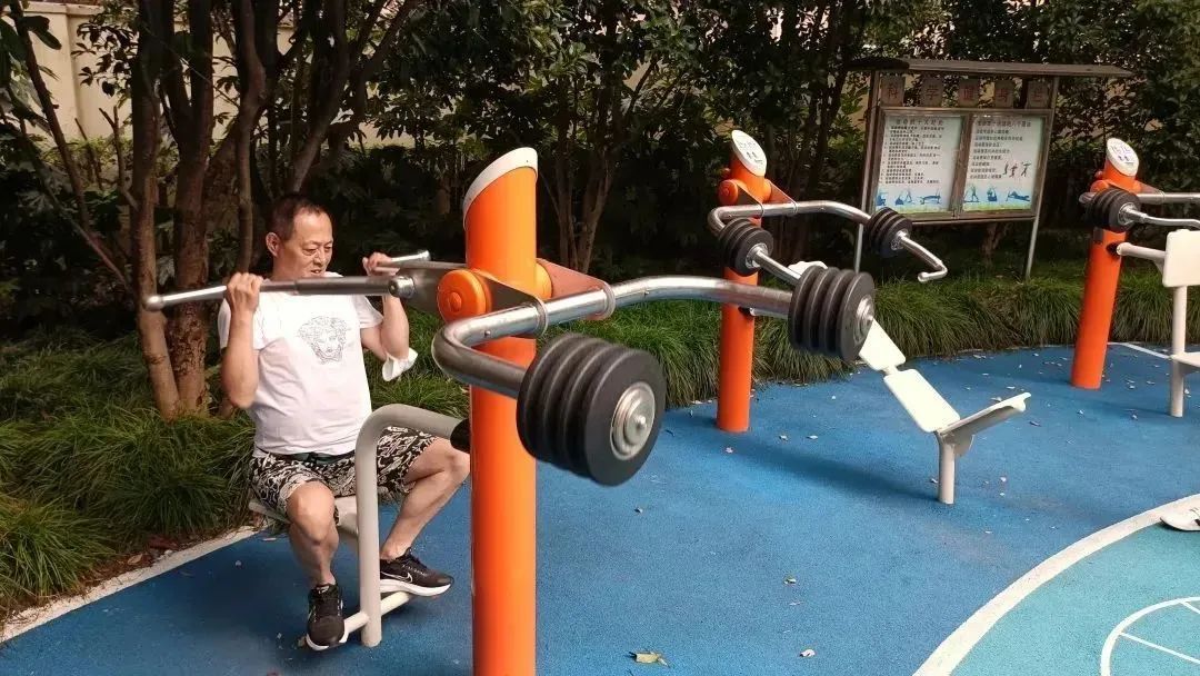 此外,梅陇休闲苑还新增了不少力量训练器材,辅以少量有氧训练器材,类似健身房里常见的综合性力量训练器械,能满足基本的身体力量训练。