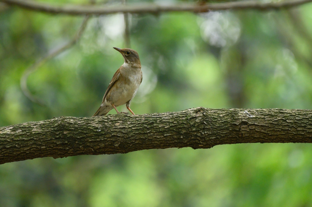 首先是鸫类候鸟,包括白腹鸫(Turdus pallidus)、灰背鸫(Turdus hortulorum)、怀氏虎鸫(Zoothera aurea)等,其中白腹鸫最为常见,整体呈橄榄褐色,腹部灰白色;灰背鸫雄鸟两胁及翼下橙黄色,背部灰色,雌鸟上体褐色较重,胸侧具黑色斑点;怀氏虎鸫雌雄鸟羽毛颜色相似,橄榄褐色中密布黑色斑点,较机警。鸫类虽然个头不小但胆子不大,喜欢在地面寻找果实和昆虫,一有风吹草动就会快速离开。