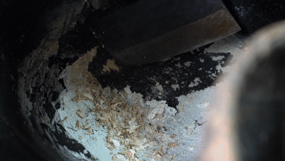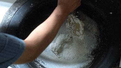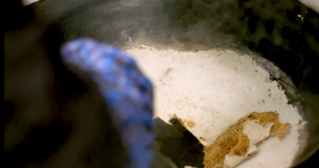 首先,烧一锅糯米饭,然后用锅铲铲些糯米,放在另一个预热好的大铁锅上,开始转动铲子,快速摊上一层层薄薄的锅巴。