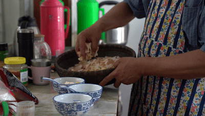 金山本地有柴火灶的人家,都会这一手。但想要做出均匀不烂的糯米饭糍,还是有很多讲究的。