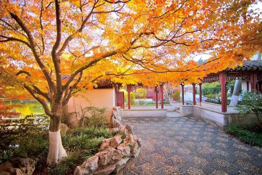 在园内走走停停,林荫深处,精致的亭台楼榭若隐若现,是留影拍照的绝佳去处。再过些时日,便可与不期而遇的红枫、银杏撞个满怀。