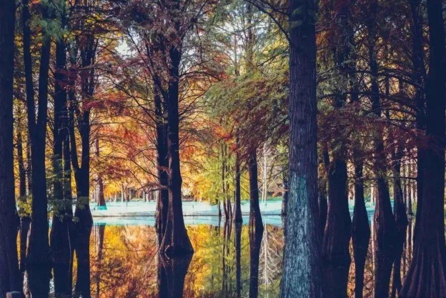 等到深秋之时,浓重的秋霜和成片的杉林、草野便能调和出五彩斑斓。火热的红、鲜亮的黄、如墨的绿……如霞似锦,浪漫迷人。漫步在林中,徒步健身,游目骋怀,享受户外的清新空气,度过悠闲的周末时光。