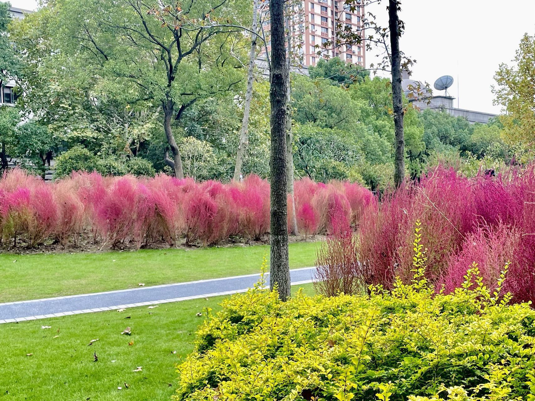 继粉黛乱子草之后,静安又添网红秋景啦!进入十一月,闸北花园的红叶地肤进入了最佳观赏期,变色后的地肤犹如油画般艳丽浓烈。