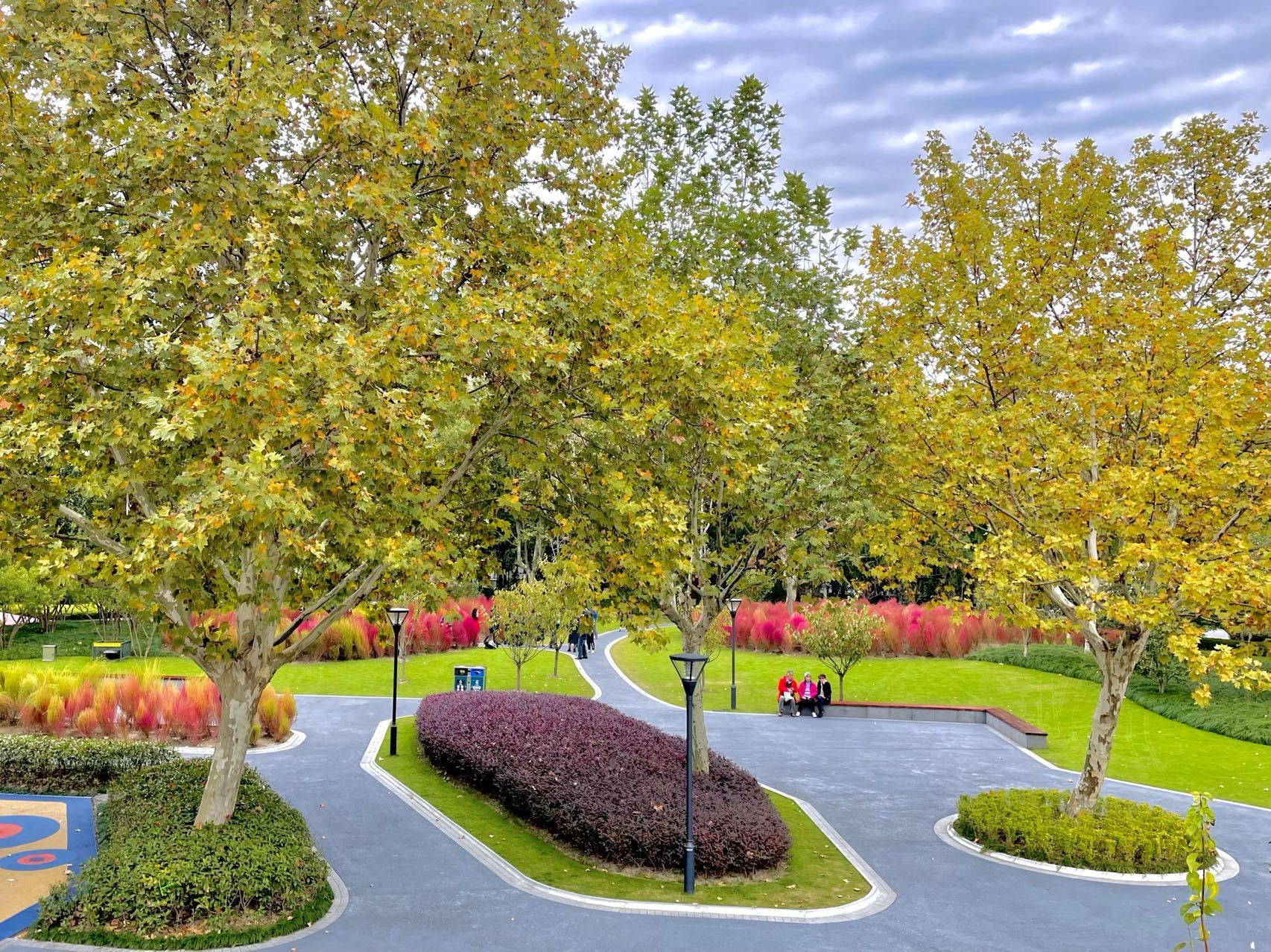 闸北公园里梧桐、乌桕等高大乔木也率先换起了秋季新装,黄中带红的渐变色丰富了公园景色,使原本就充满古意的公园更添一抹韵味。