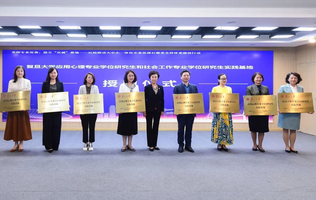 焦扬为复旦大学第二附属学校、上海市杨浦区教育学院附属中学、上海市育鹰学校、上海市杨浦区复旦科技园小学等四所复旦大学应用心理专业学位研究生和社会工作专业学位研究生实践基地授牌。