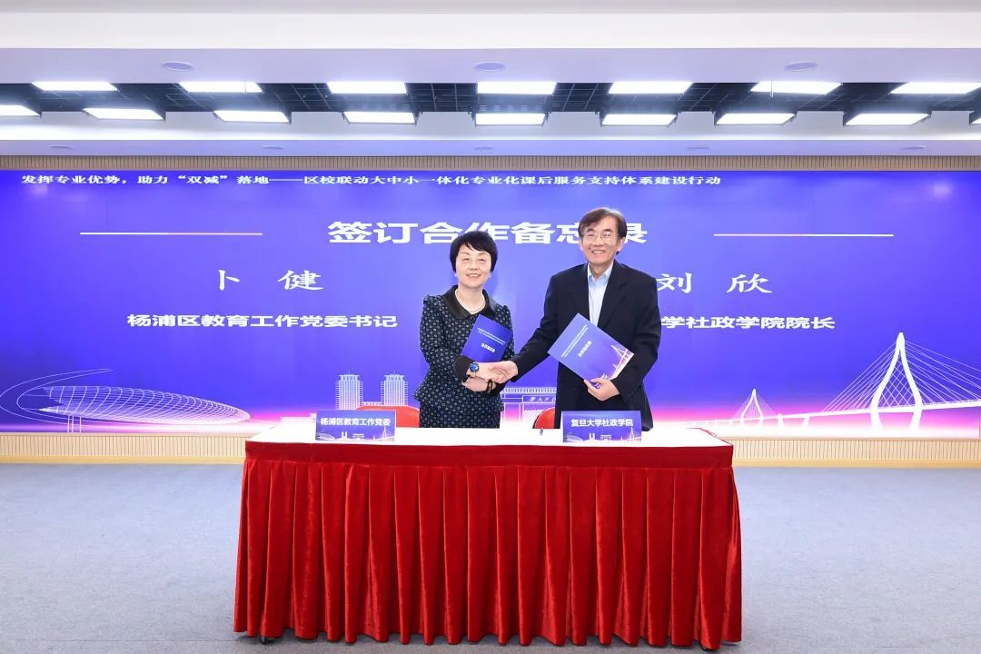 杨浦区教育工作党委和复旦大学社会发展与公共政策学院签订合作备忘录。