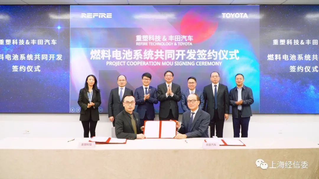 11月3日,丰田汽车与重塑科技正式签署共同开发燃料电池系统合作备忘录。市经济信息化委副主任刘平、嘉定区副区长李峰、丰田中国董事长上田达郎、重塑集团董事长兼总裁林琦出席并见证了签约仪式。