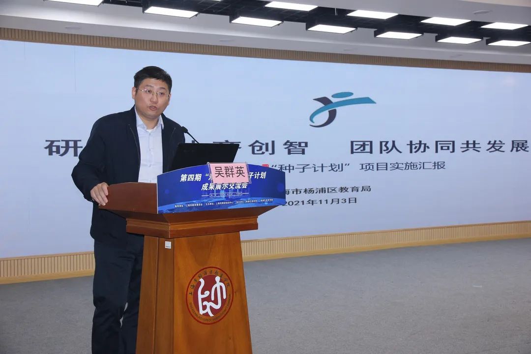 2021年11月3日,上海市第四期普教系统名校长名师培养工程“种子计划”成果展示交流会在杨浦区教育学院举行。上海市教委李永智副主任、上海市教育学会尹后庆会长、上海市师资培训中心周增为主任、陈霞副主任、杨浦区教育局吴群英副局长、杨浦区教育学院周梅院长,与市教委有关处室人员,各区教育局、教育学院分管领导、各区种子计划教师代表等出席了本次大会。