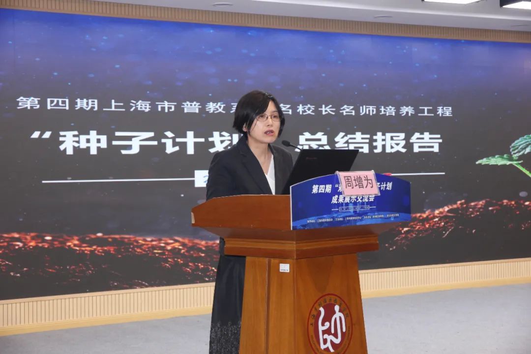 会上,上海市师资培训中心周增为主任从总体情况、经验与特色、工作成效以及反思与展望等方面对双名工程第四期“种子计划”进行了全面回顾与深入分析。周主任指出,“种子计划”深化了对教育育人本质的认识,拓展了教师研修的共同体样态,示范带动了更多的教师高质量发展。希冀未来青年教师的培养可以做到个别化指导再加强,辐射影响再扩大,研修模式再探索。