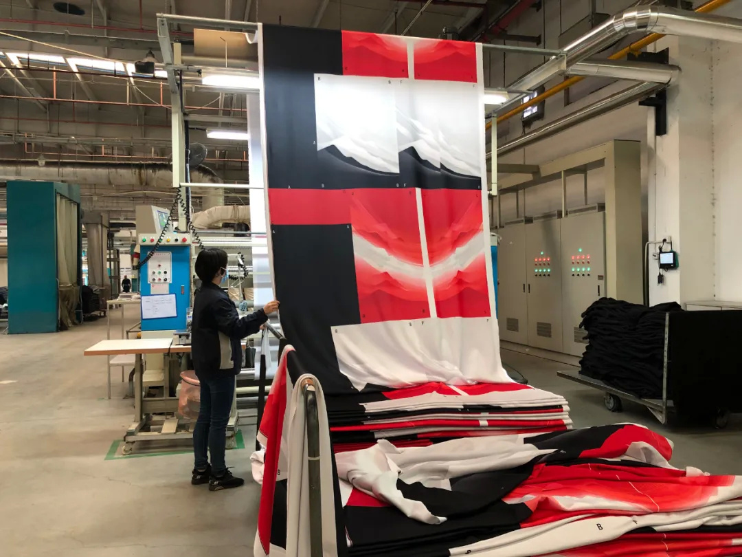 在生产车间看到,工作人员正在对面料进行定型处理。面料的正面图案,融合了中国传统山水画与冬奥核心图形的雪山图景,反面是具有保暖性的抓绒面料,“根据冬季特殊气候条件的需求,保暖是重要指标,经过检测,这款面料是市场上同类产品的两倍左右。” 上海嘉麟杰纺织品股份有限公司研发部经理张义男介绍,此外,这款面料还兼具抗起球、抗静电、轻薄透气、弹力大等特性,让穿着者更舒适。
