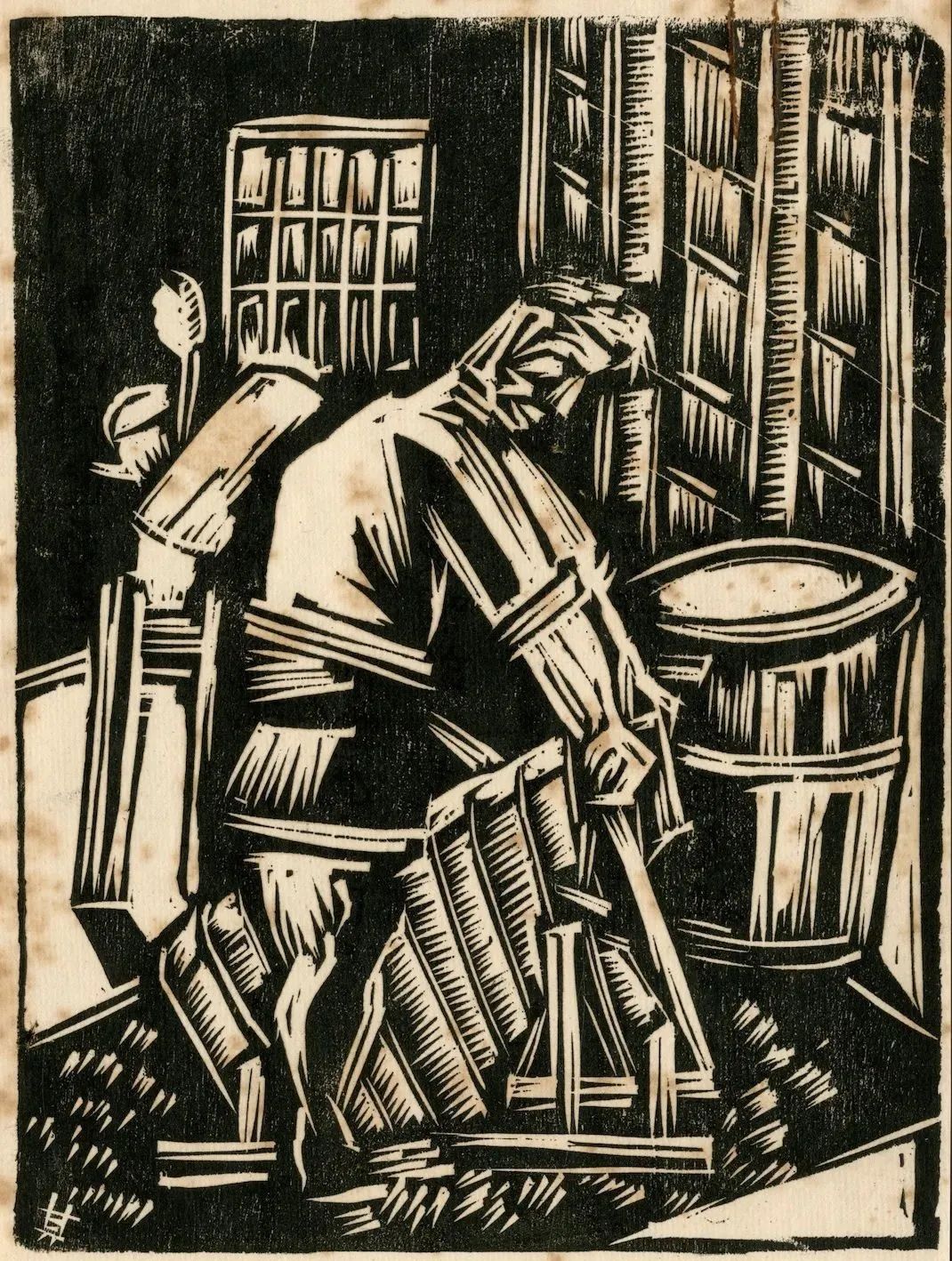 △《刨烟的工人》 赖少其作品