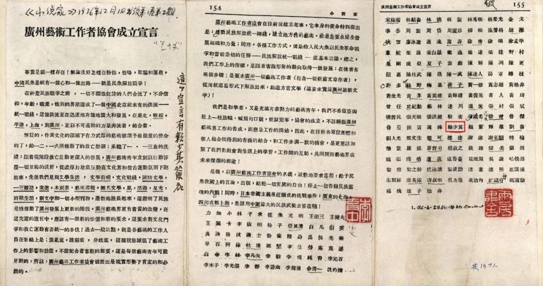 △1936年 广州艺术工作者协会成立宣言,红框中为赖少其签字