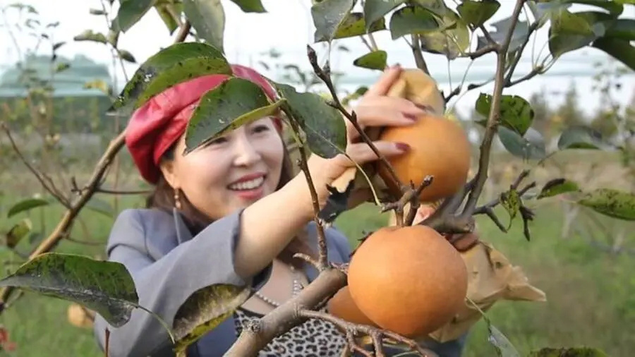 梨的成熟期一般在7-8月份,到了9-10月份,即使晚熟品种也纷纷下市了。但在金山区吕巷镇太平村,上海月财果蔬专业种植合作社里,238亩有机金果梨11月上旬才开始采摘上市。这种生长期长达8个月的梨果,每千克卖到了近100元。
