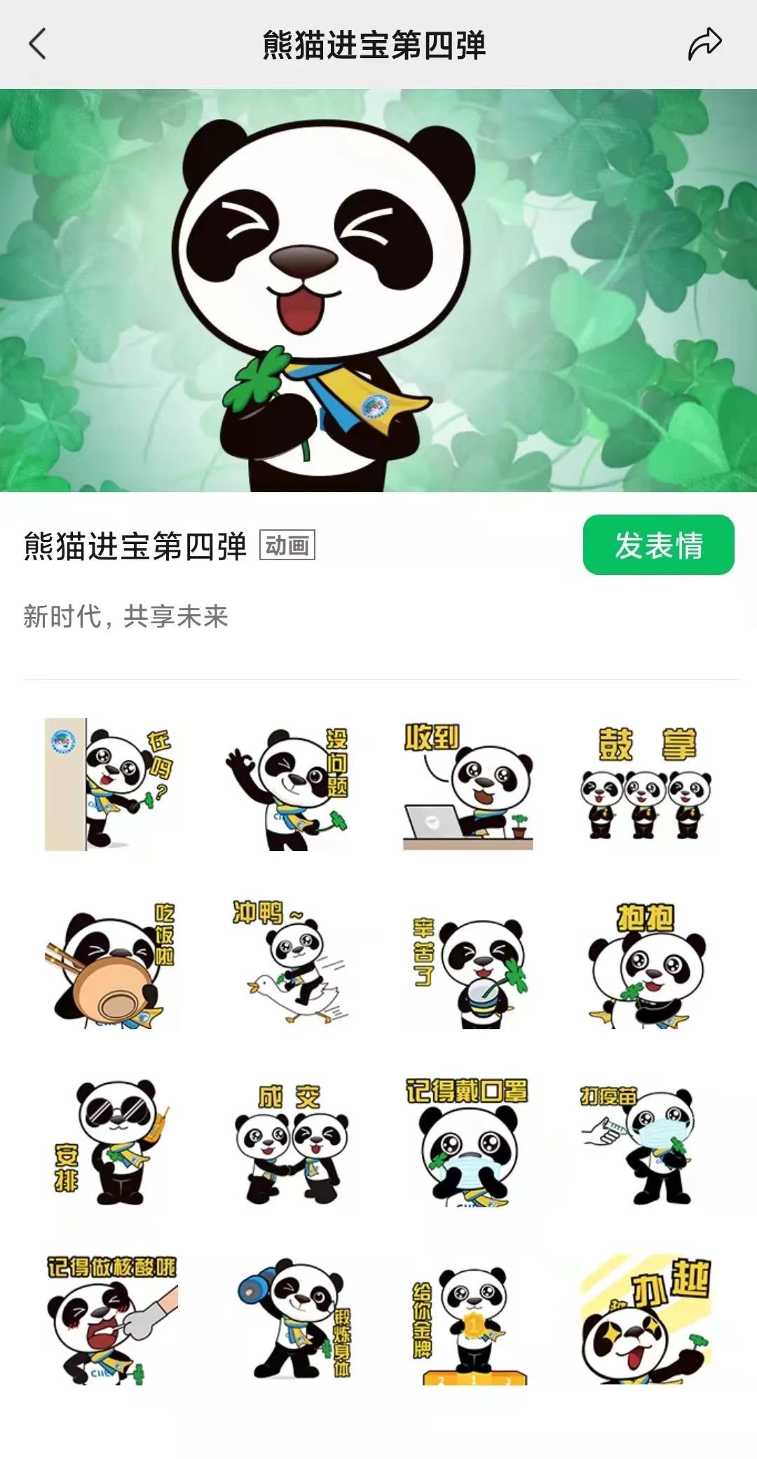 第四届进博会已经开幕,吉祥物“进宝”有了新的表情包。感兴趣的朋友们,可在微信表情商店搜索并下载“熊猫进宝第四弹”。详见↓