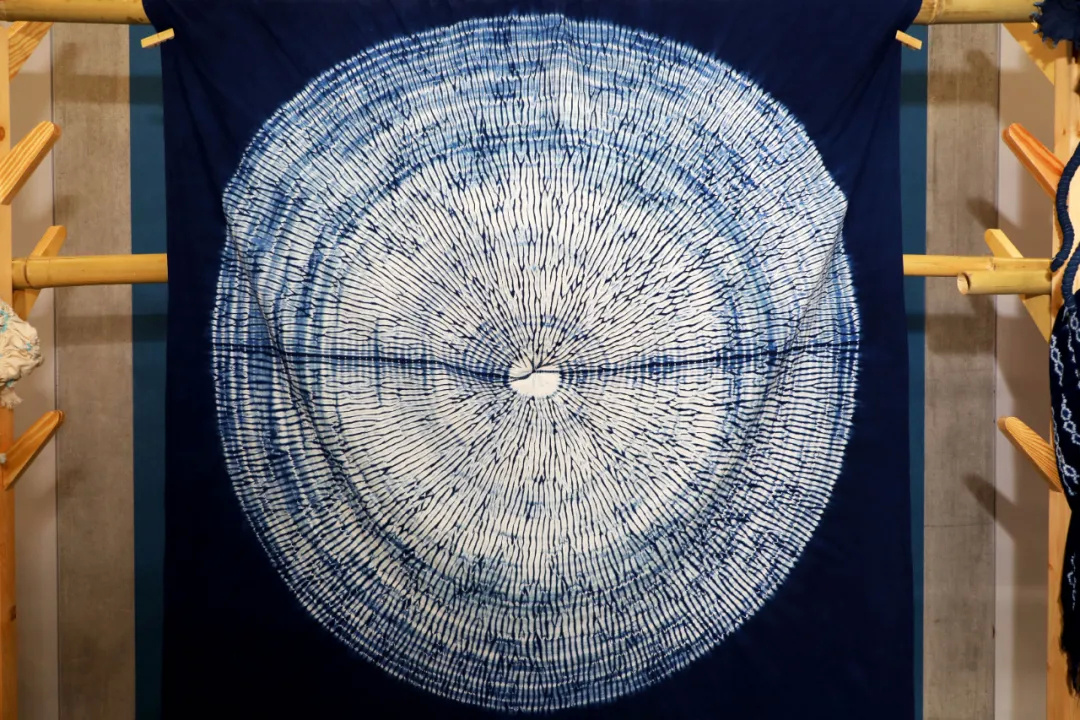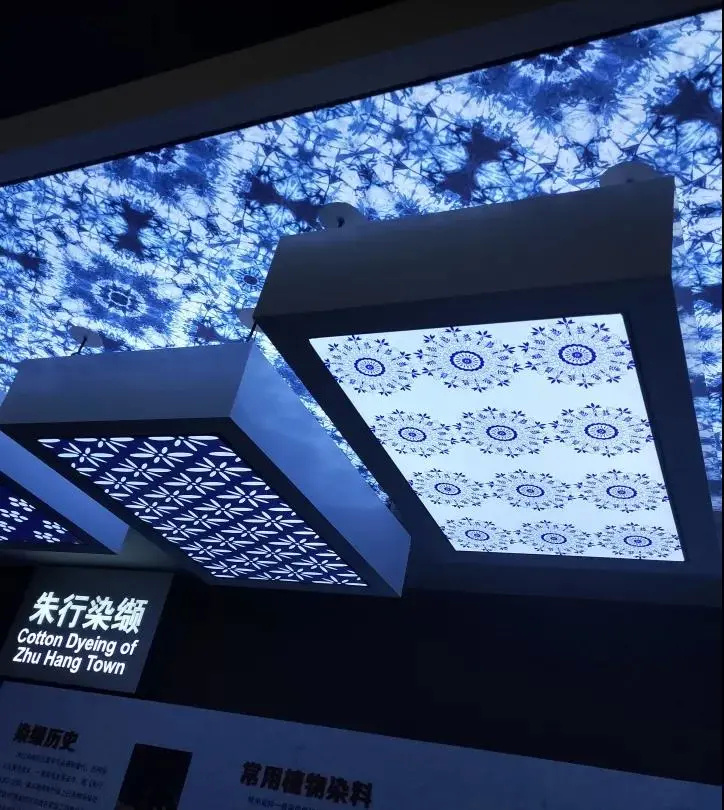 如今,最纯粹的朱行染缬不再只有深沉幽暗的蓝,五彩的染缬艺术糅合了现代与传统,成就这古典的美,一头连着唐宋的气韵,一头连着金山的乡土。