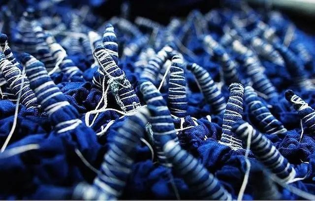 其原理是将棉纱或棉布等本白色增加色彩,农家设法通过染色手法将纱和布染成深蓝或黑色棉纱或者成为蓝白相间或黑白相间的棉布。