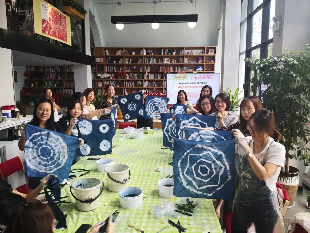 2013年,朱行中学挂牌成立“梦之韵”扎染工作室和扎染展示厅,成为金山工业区科普教育基地和非遗教育基地。