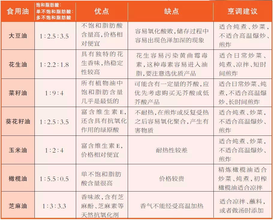 除了食物原料,煎炸用油的选择也很关键。一图梳理7种常见食用油的优缺点和烹调建议️⬇️