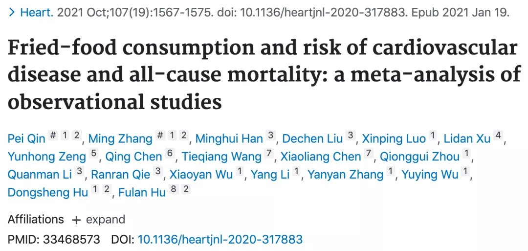 研究人员认为,尽管调查的数据不可能百分之百地精确,但无论如何,油炸食物和心血管疾病健康风险之间的关联是存在的,而且有剂量反应关系。