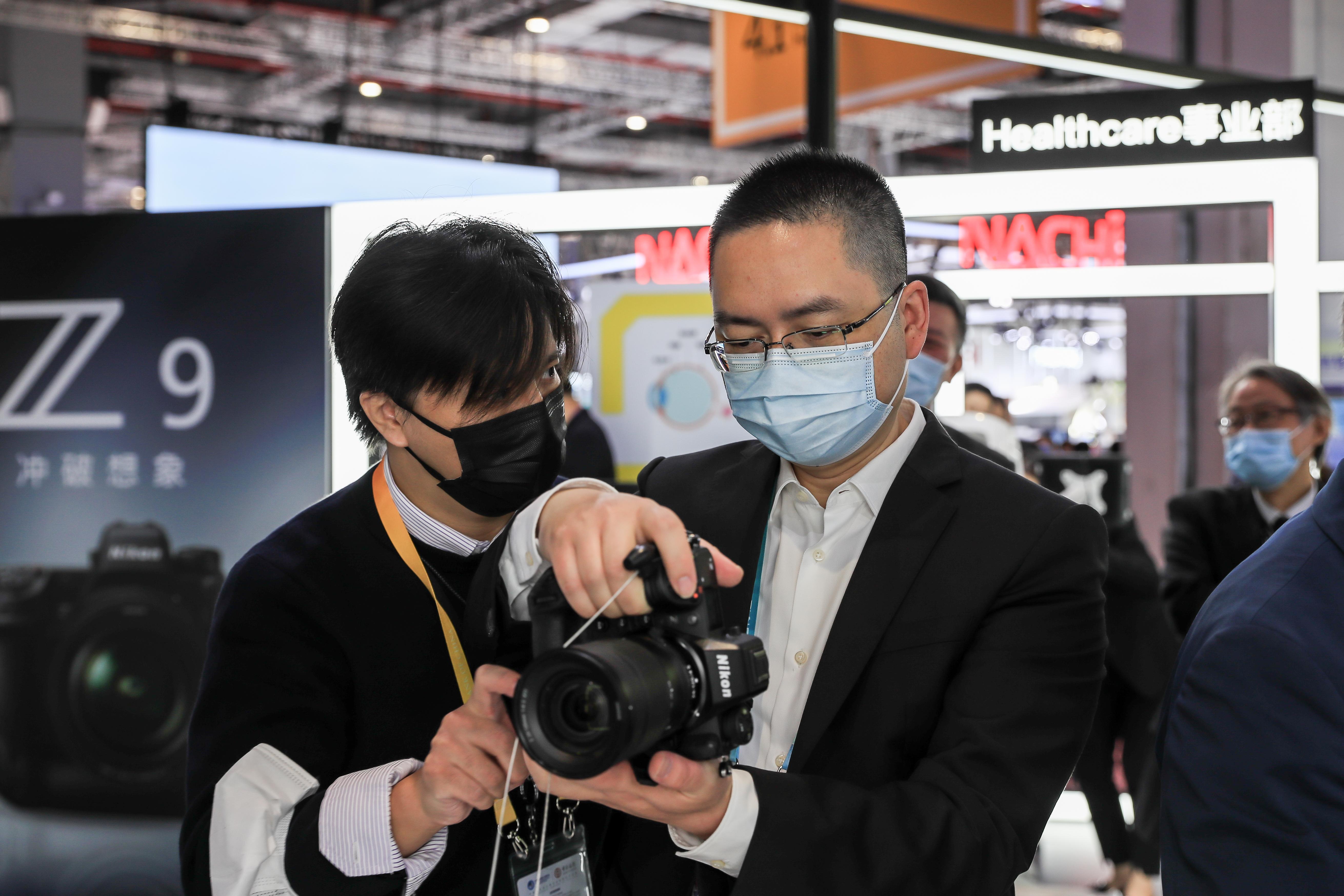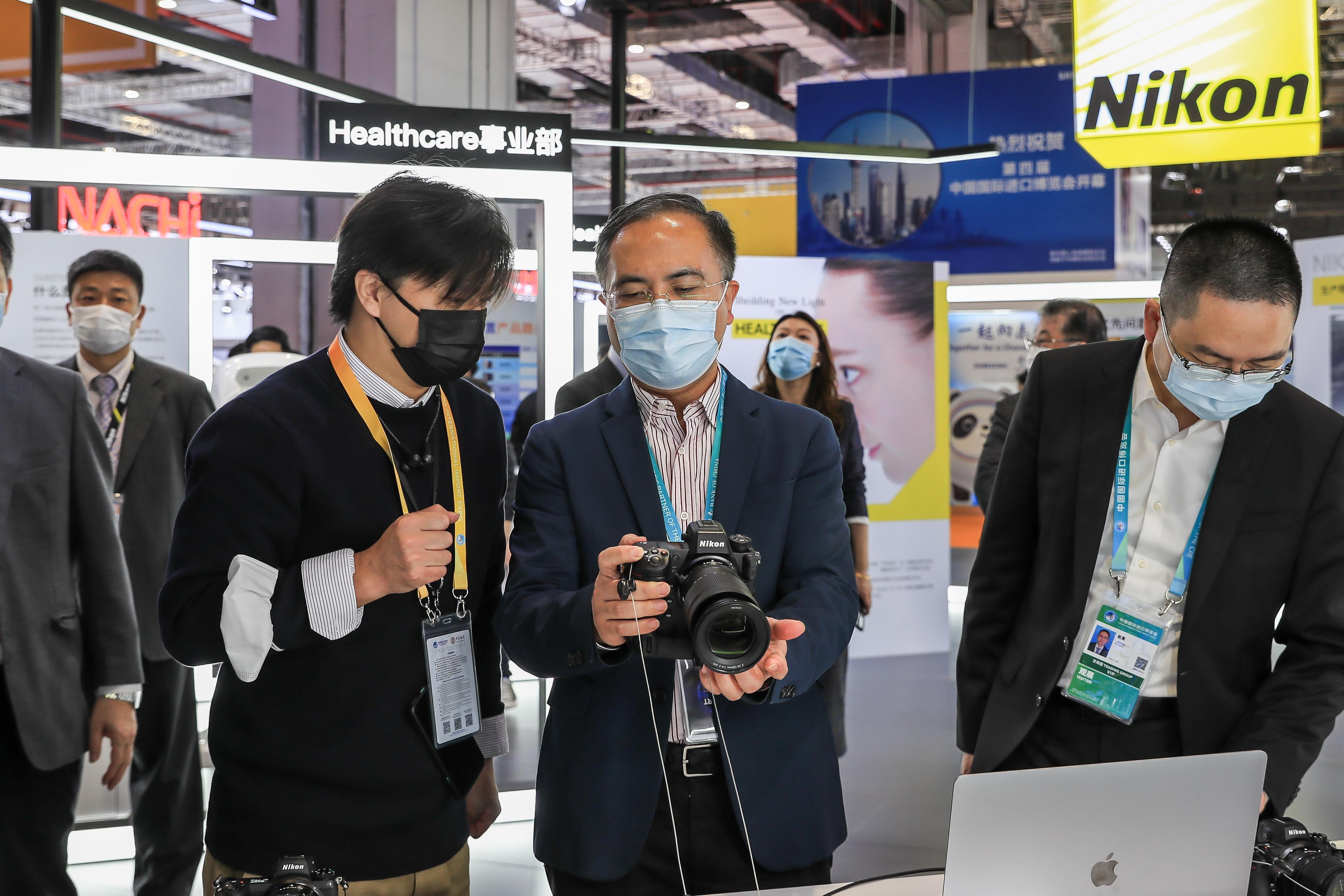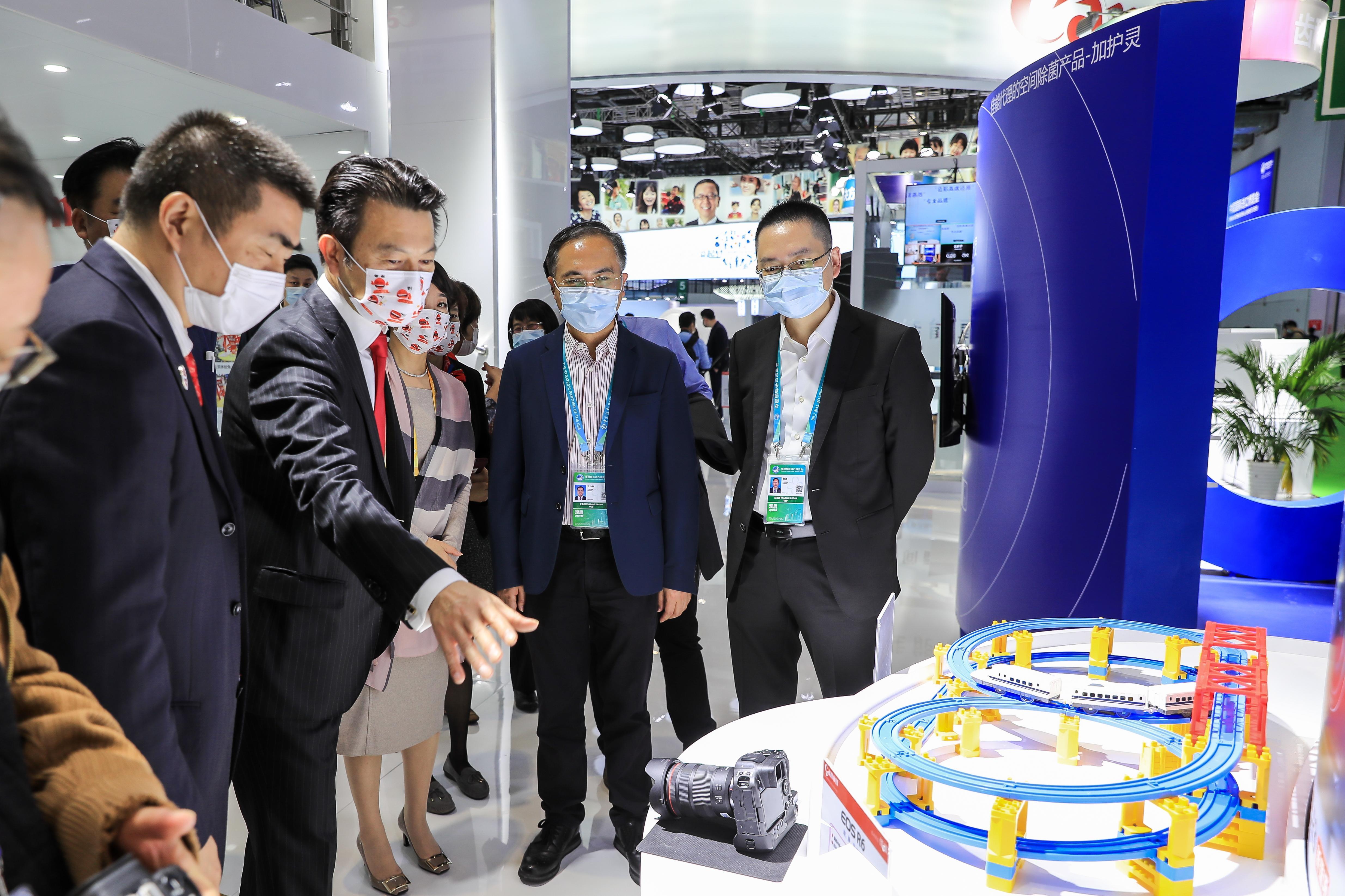 区领导先后走访了技术装备展区的日立、ABB、尼康、佳能、复星健康,以及食品及农产品展区的萨普托、保乐力加、易富贸易等企业。