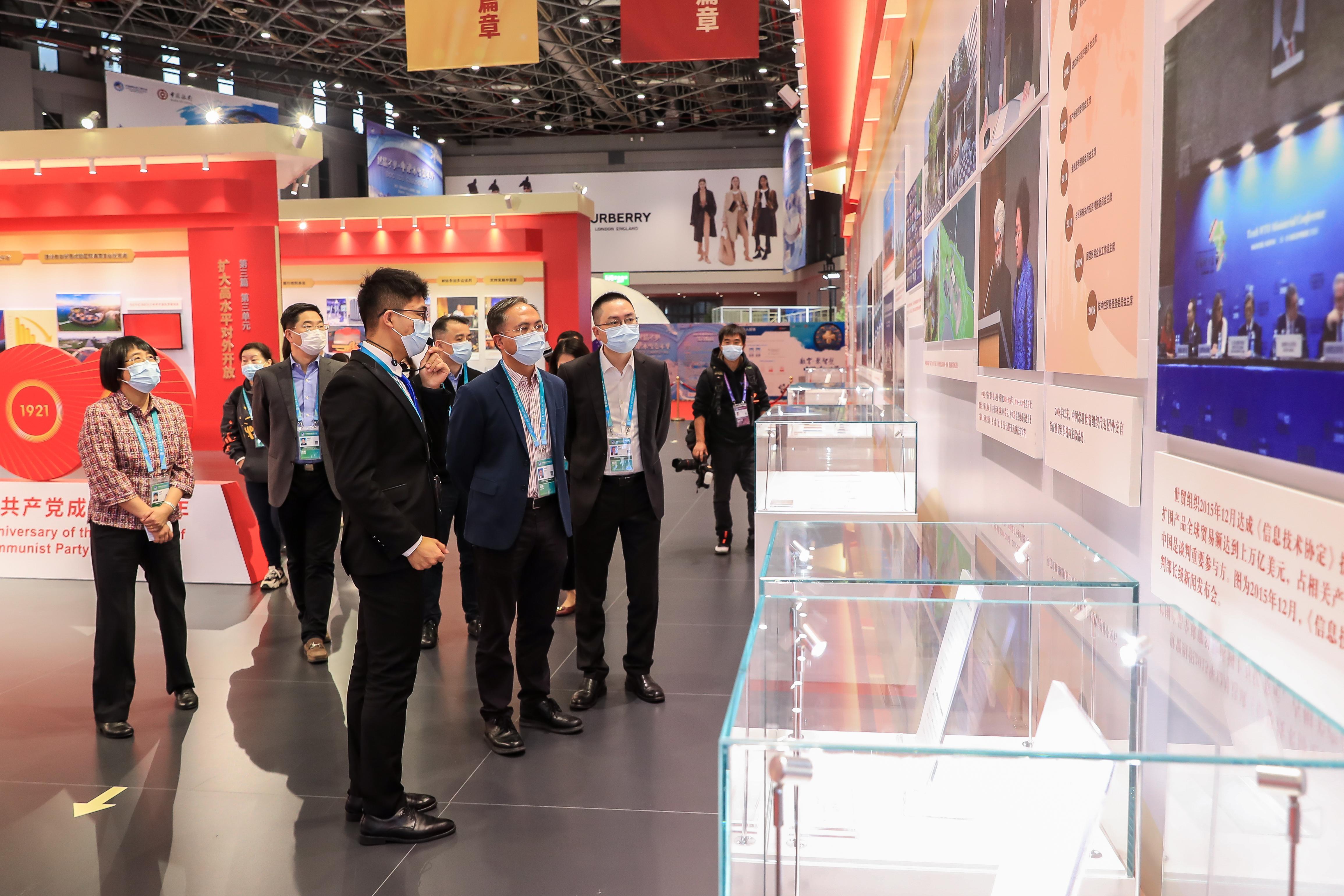 11月7日上午,区领导沈山州、赵勇一行来到第四届中国国际进口博览会场馆,调研慰问黄浦区重点企业展台并参观了“对外开放里程碑,合作共赢新篇章”中国加入世界贸易组织20周年专题展。