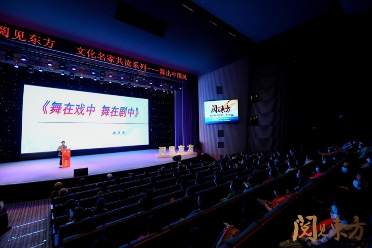 讲座中,黄豆豆结合自身30多年的学舞、参演、编创经历,介绍其参与的《醉鼓》《中国功夫》《庄周梦》《保卫黄河》《坚信爱会赢——致敬白衣英雄》《关山月》等舞蹈作品。黄豆豆坦诚地说:“如何用语言来阐述舞蹈这门超越语言和文字的艺术,其实特别难。我希望用自己的经历、用最直白的大白话,来分享我对舞蹈的体悟。”