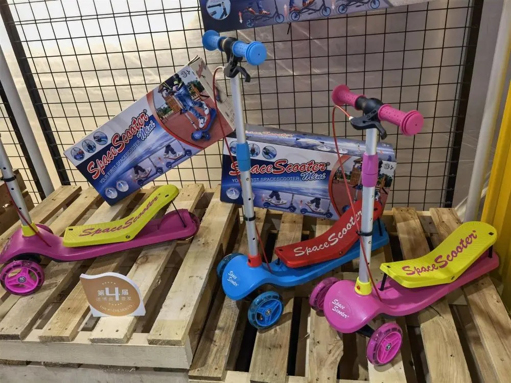 一款来自荷兰的滑板车,与市面上现有的滑板车有所不同,无须一只脚在地上踩踏前行,而是直接把双脚都放在踏板上,用后脚不时踩一踩踏板,就可以滑行起来,人站在上面,有一种太空漫步的感觉,所以被称为“太空滑板车”。这一系列产品的价格也比较亲民,面向2-5岁儿童的本届进博会首发款,售价在两三百元,面向8-10岁孩子的一款售价在五六百元。