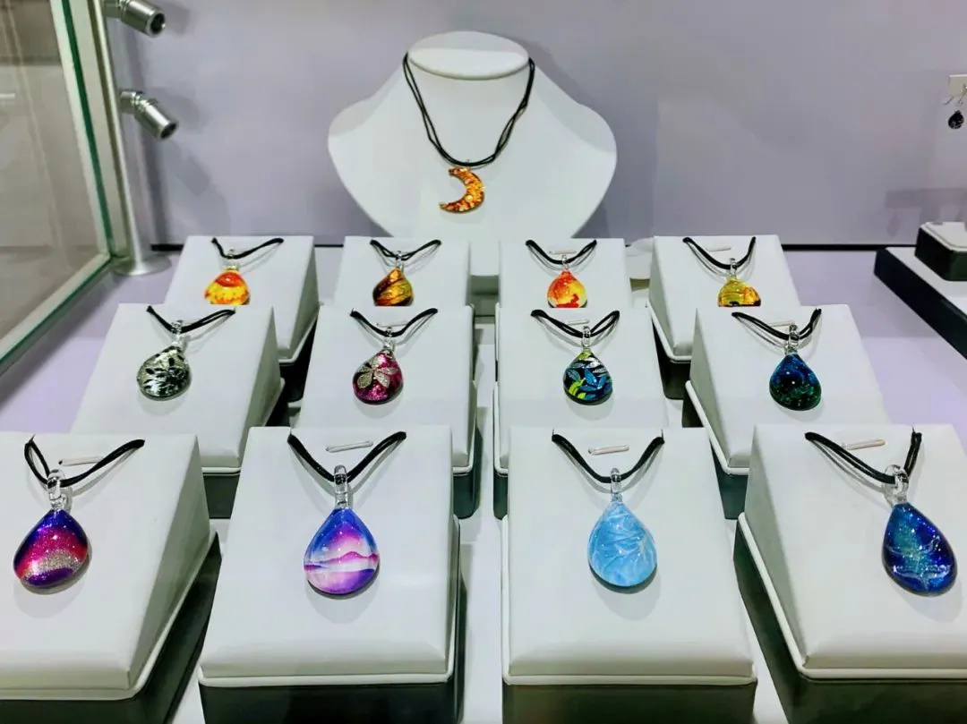 North One Glass:来自日本的手工艺术玻璃珠宝,所有设计均源于北海道的自然风景故事,使用特殊工艺将艺术、自然、玻璃结合制成特殊的文旅纪念品,兼顾时尚与佩戴功能。本次展出60个品类均为中国首发,本届进博会日本馆可见。