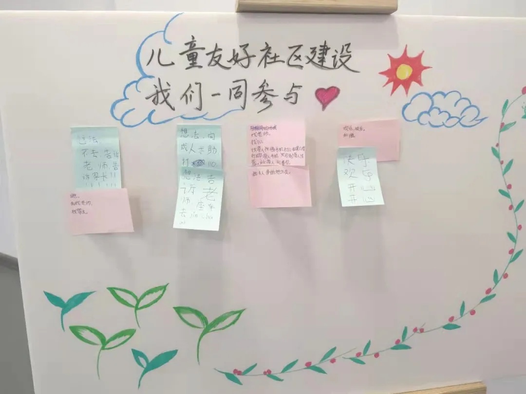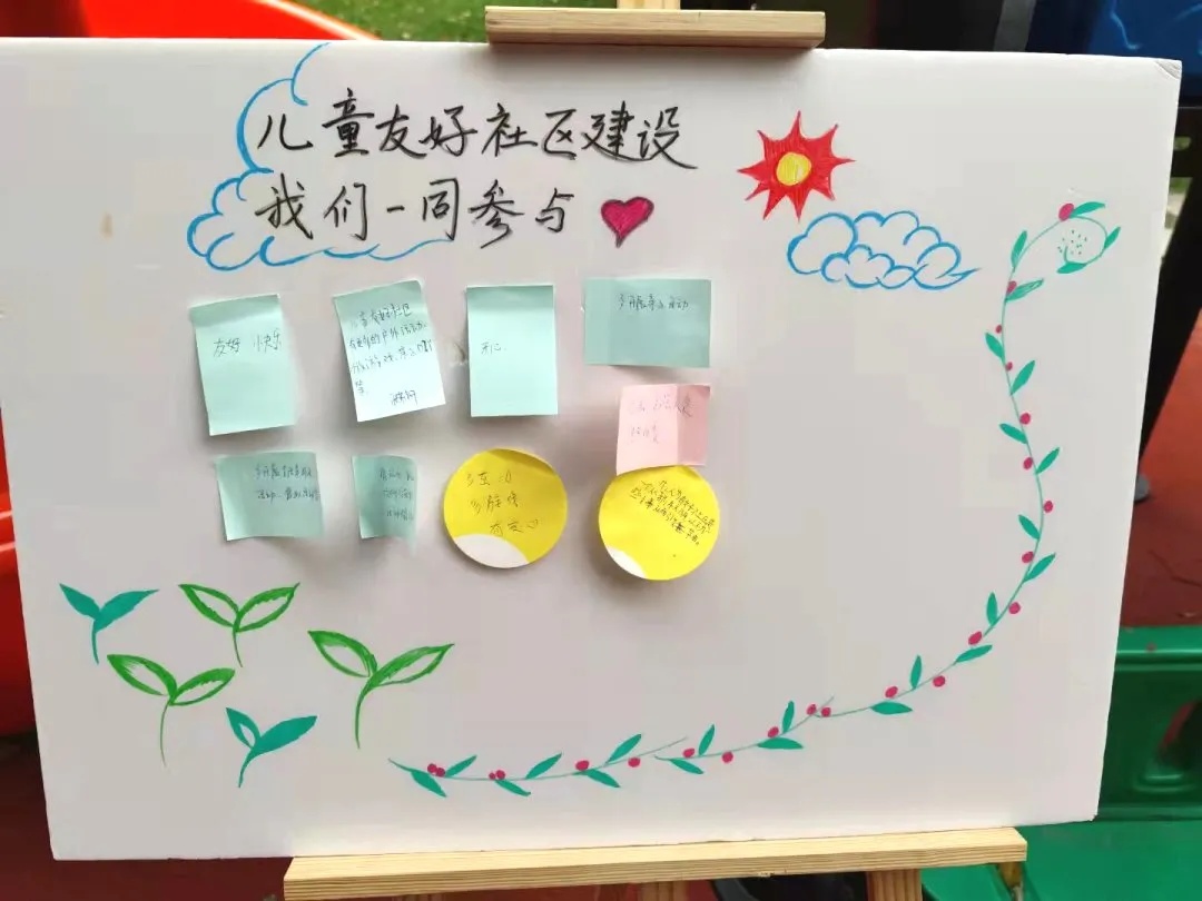 小朋友们和家长一起针对儿童友好社区的创立进行了讨论。孩子们感觉到儿童友好社区能提供丰富多彩的活动,陪伴感十足。