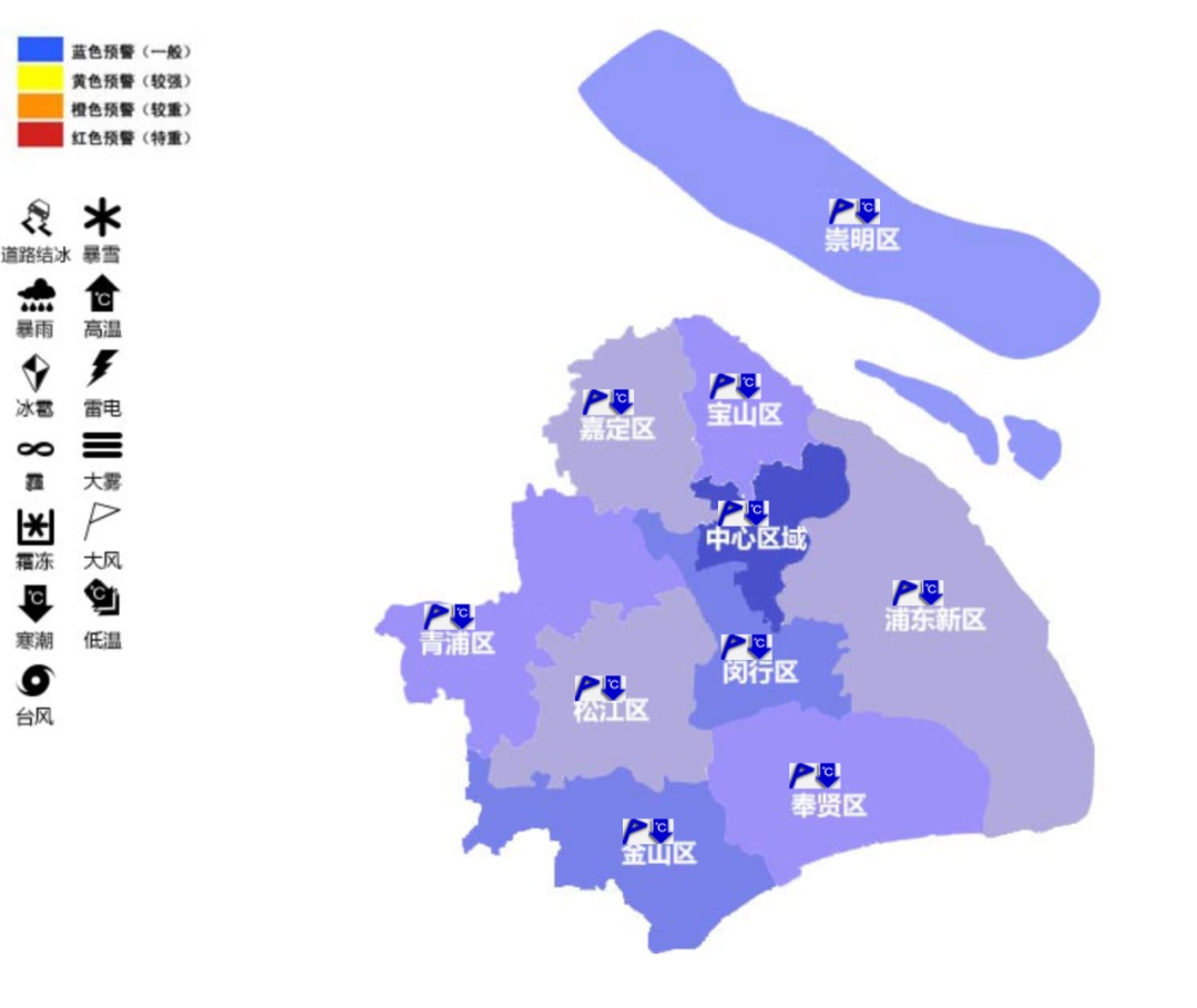 魔都大风蓝色预警和寒潮蓝色预警仍然高挂