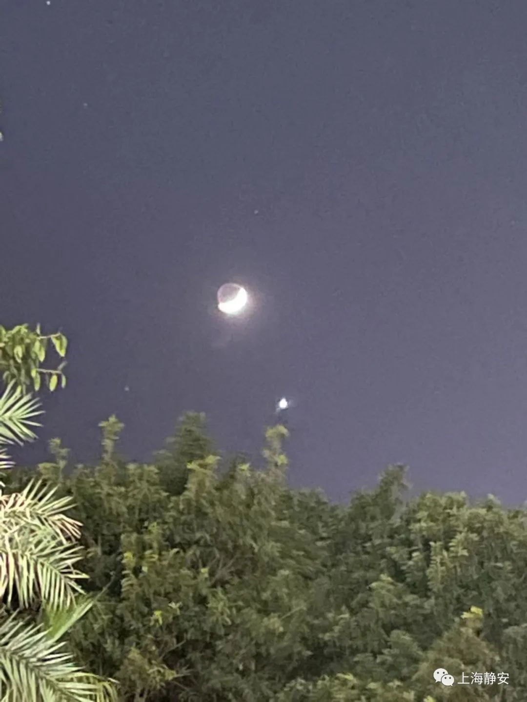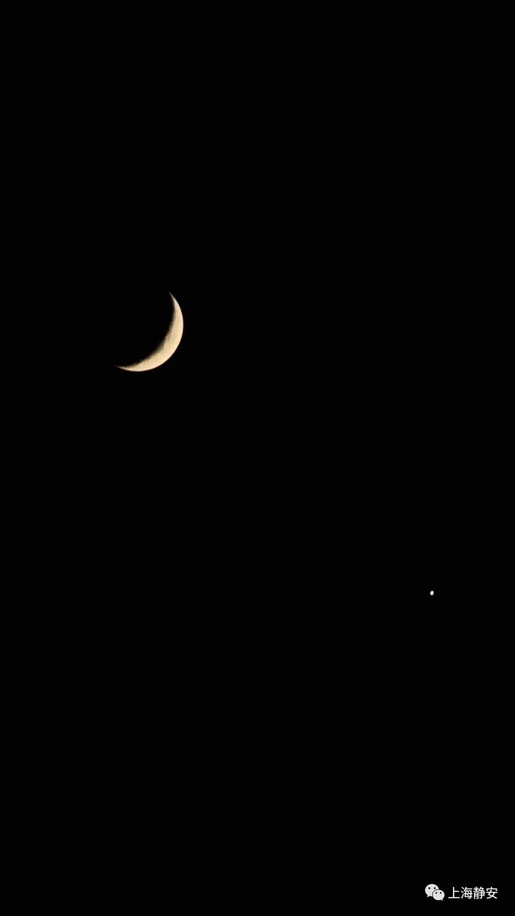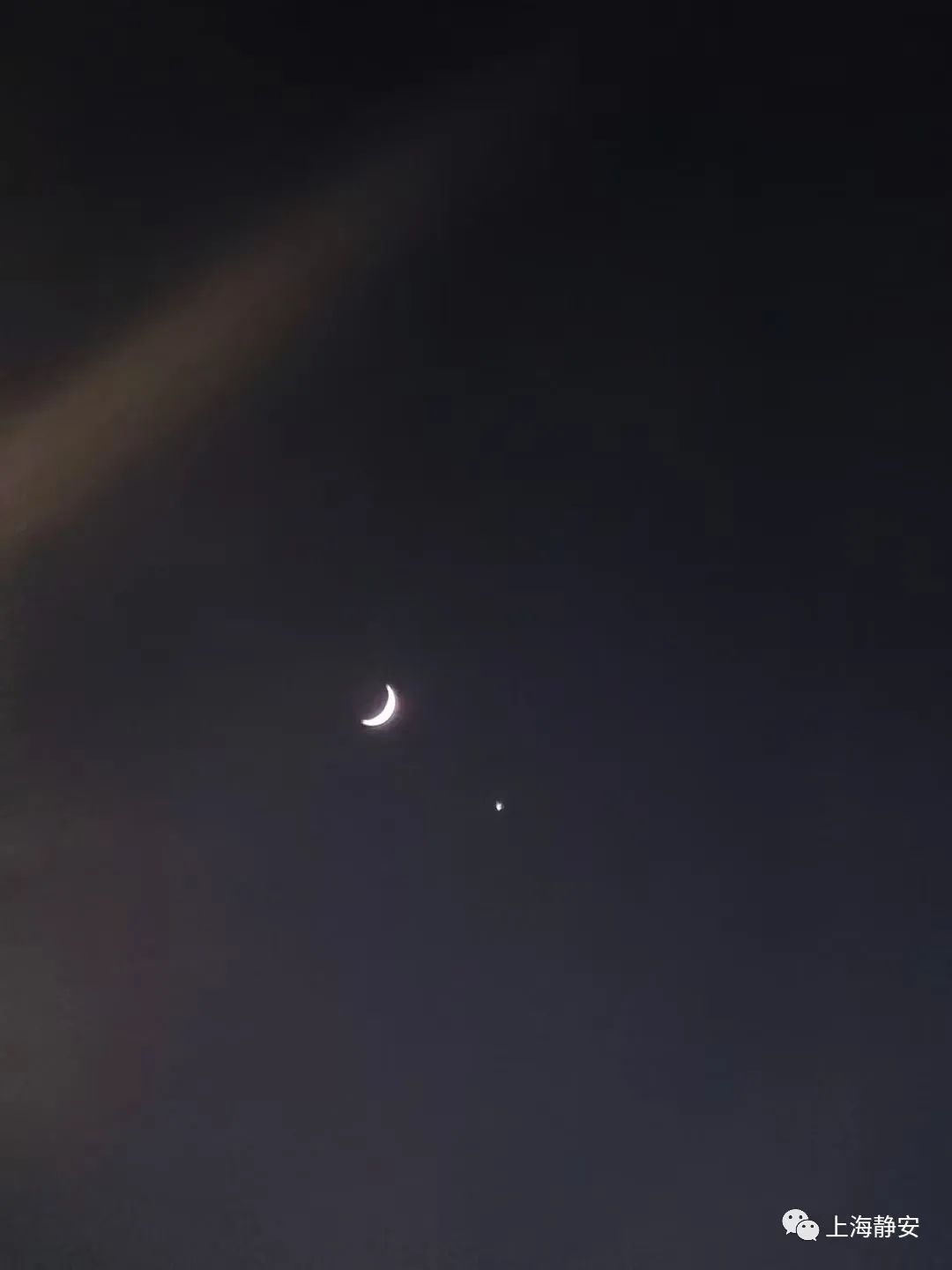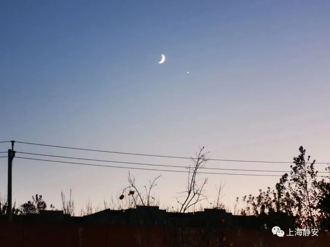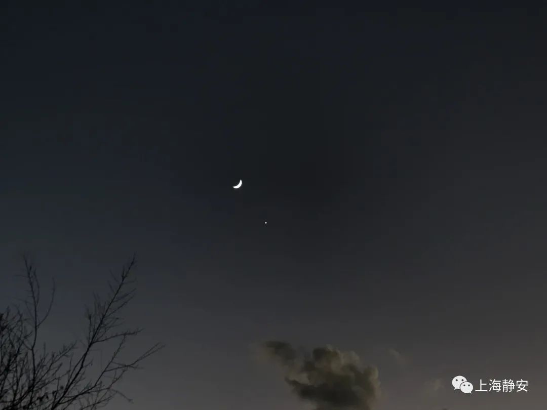 昨天傍晚,天空中开始出现肉眼可见的“金星伴月”景观天象。金星和月亮在白天相聚,此次金星会合月亮,两者相距1.1°。在“金星伴月”出现的时候,太阳还没有落山,可以同时在西边见到太阳、月亮、金星在一个画面中。这个现象持续到20点左右,随后进入了无月夜。