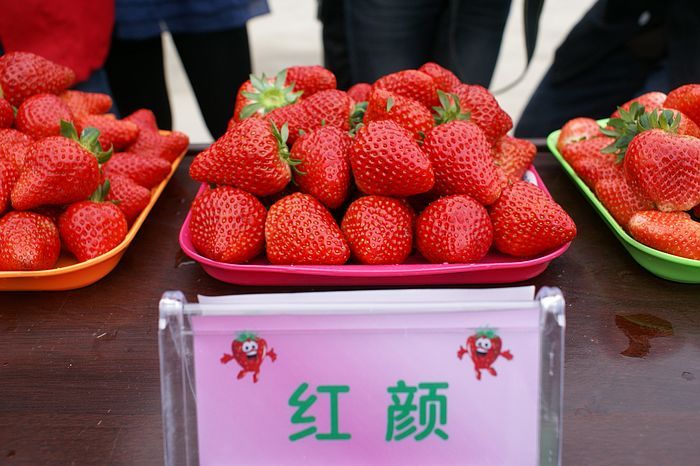 章姬草莓别名叫“奶油草莓”,口感和奶油接近、甜软多汁、香味浓郁;红颜草莓香味浓郁,糖度从顶端到底部依次递减,既有香甜的草莓味,也有樱桃的酸甜味。