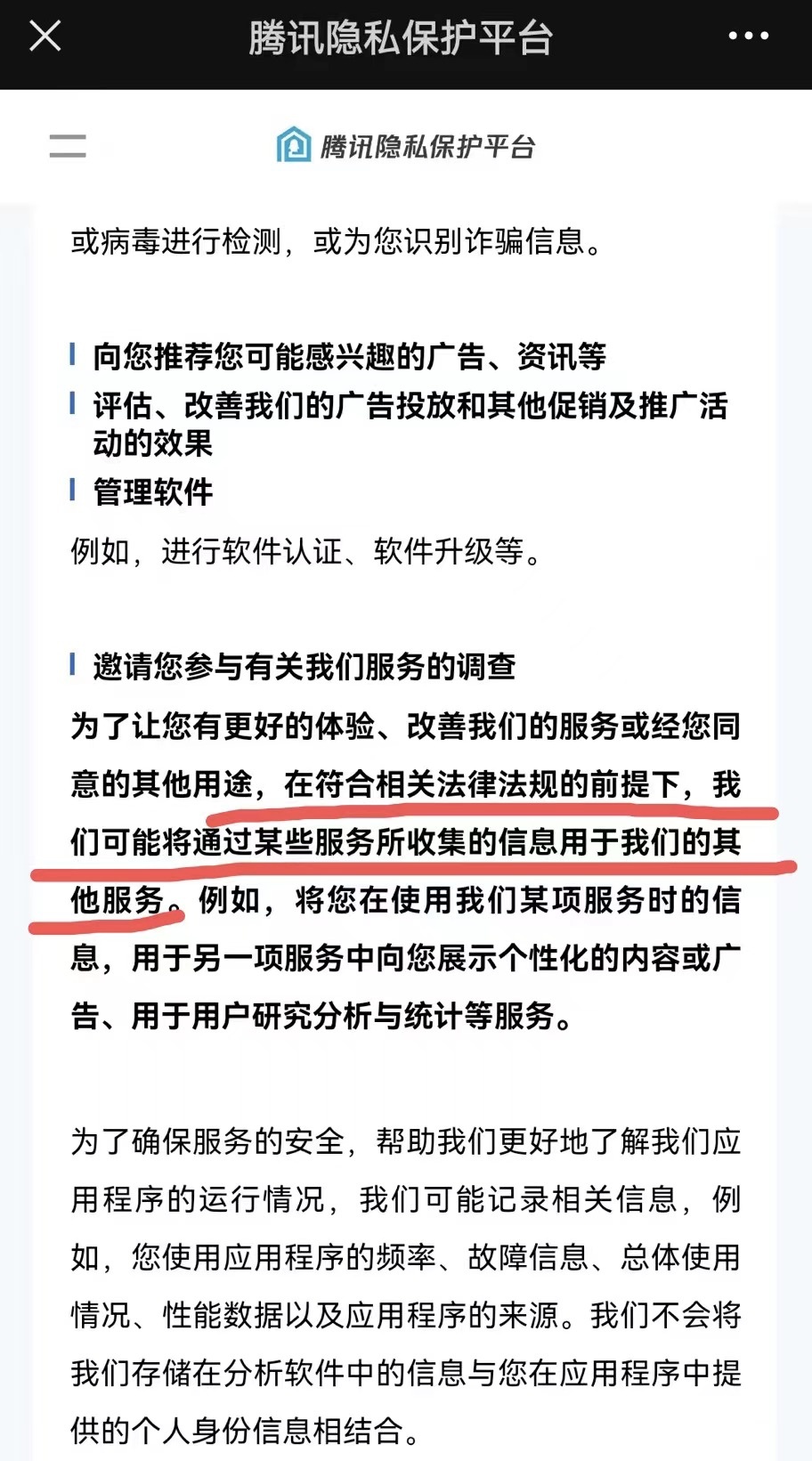 如果腾讯公司仍然在收集消费者的行为数据,那又是基于什么理由?