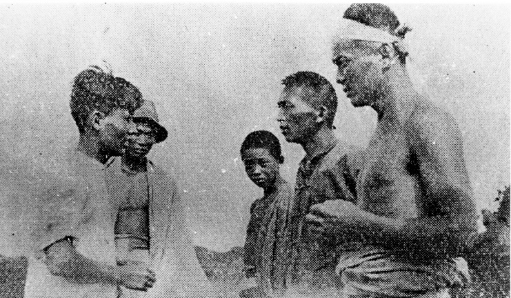 阿祥奶奶来送饭,见状大惊,连声呼叫“救命!救命!”曾祖父闻讯赶来,扶起阿祥父子,用凉水湿润他们的额角。阿祥爸睁开眼,嘴唇动着说:“完了,完了!”。