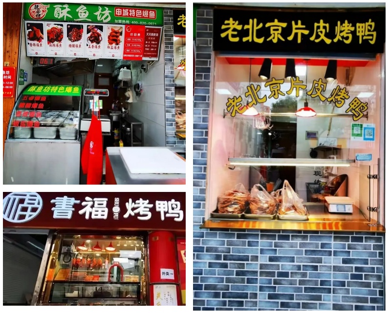 有上海熟食——佬街佬味,这家店喜欢开在居民区附近,深谙上海人的口味,每周二还有全场8折优惠;还有书福烤鸭,干干净净的店面,一排排烤鸭整齐地挂在橱窗里,金黄诱人。除了主打的烤鸭外,这家店也有不少其他美味的熟食可供选择。