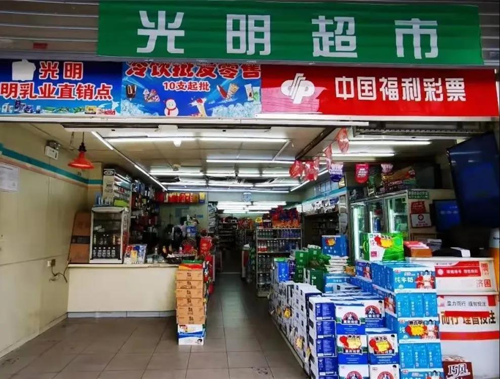 长宁支路上还有一家光明超市,这里可以买到很多种类的牛奶,还有上海人从小喝到大的真元可可奶,满满都是回忆。