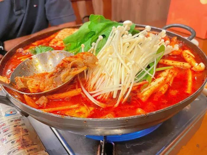 如果吃辣也是你的爱好,那么这锅热气腾腾的牛肠锅你一定不要错过。光是看着这些大块的豆腐、牛内脏、泡菜、蔬菜在锅里沸腾,就是一种视觉上的享受。牛肠超级嫩软滑爽又不失Q弹,一口咬下去牛油的香味喷溅在口中,汤里充斥着辣椒面,一口下去是那种纯粹的辣椒香。