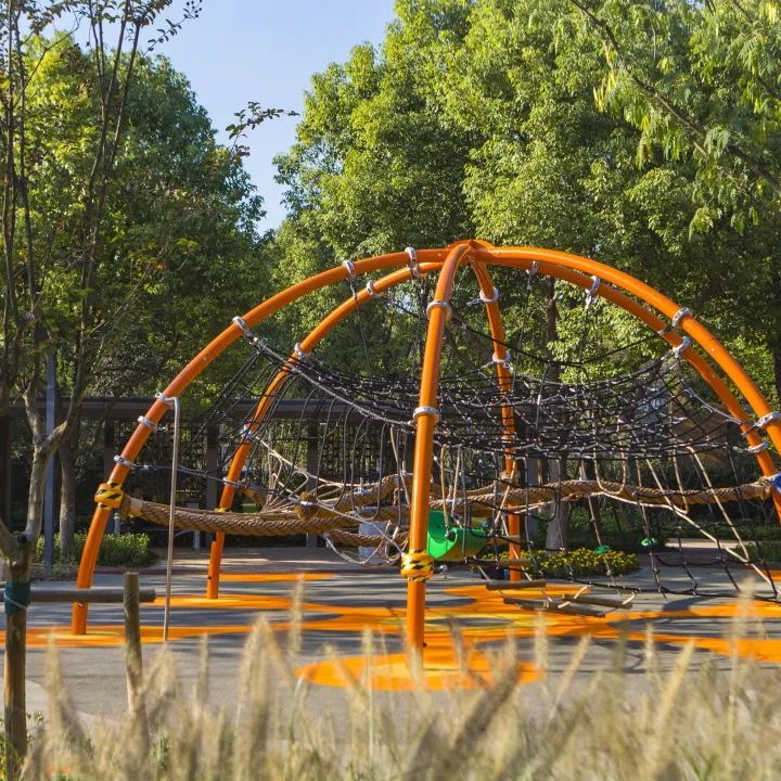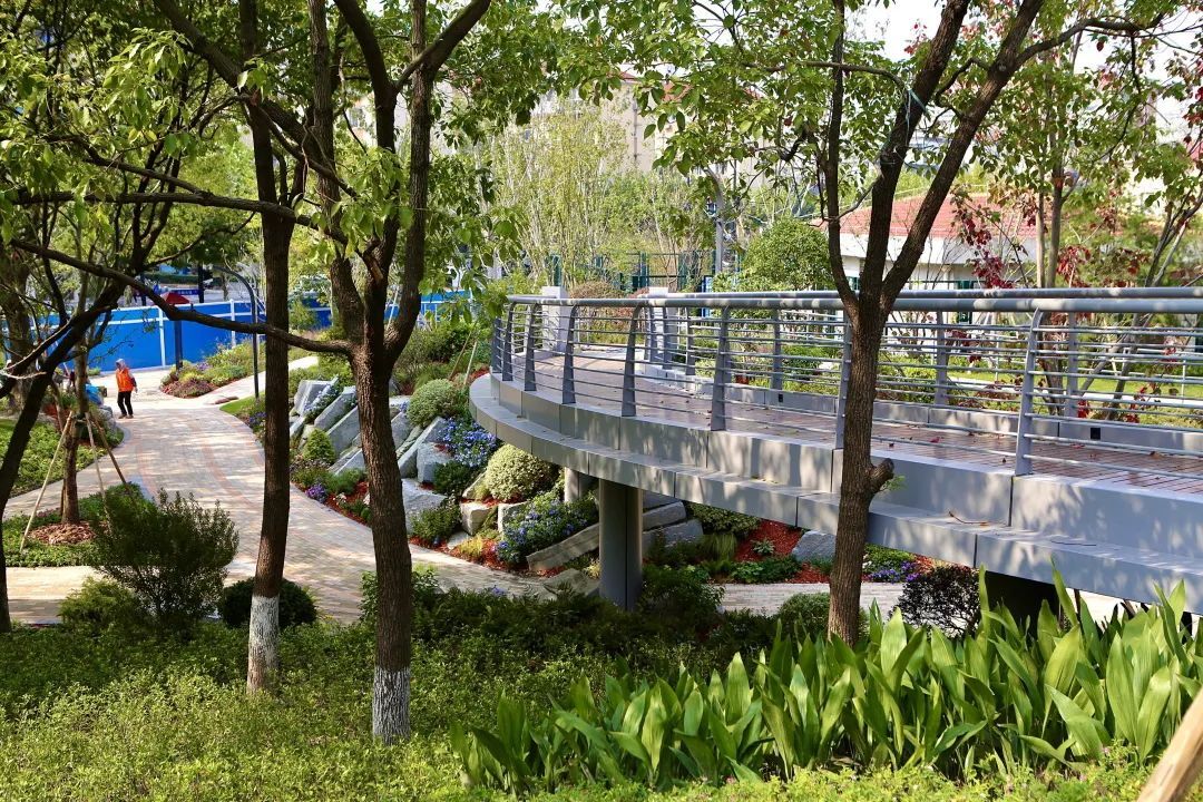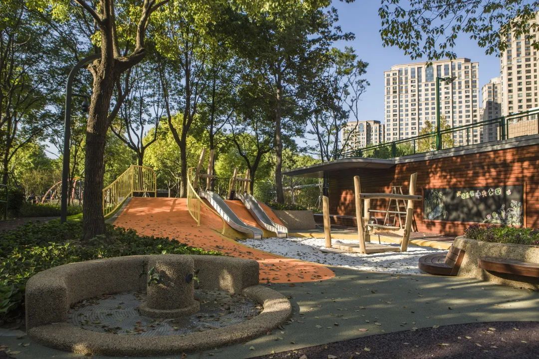 中兴公园以地形为造景基础,创造开敞活跃的多功能草坪空间,并打造园路立体交叉体系。利用微地形塑造整合各要素,打造独具山水意境的中国新自然主义公园景观。并通过竖向控制,把控各竖向要素与场地之间的竖向关系,实现了场地内的全无障碍动线。