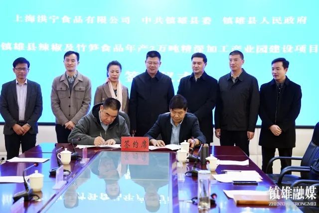 11月15日,经过实地考察和深入沟通洽谈,上海洪宁食品有限公司与云南省昭通市镇雄县委、镇雄县人民政府签订投资合作框架协议,决定投资5000万元在镇雄建设辣椒、竹笋等精深加工项目,从加工环节入手推动镇雄辣椒、竹笋全产业链发展。