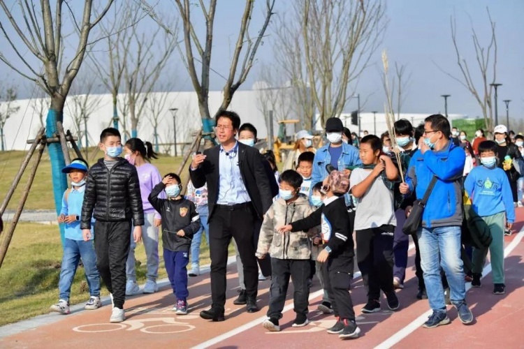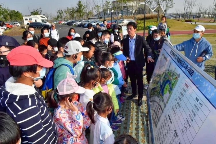 这场研学活动是“2021上海城市空间艺术季临港新片区·申港社区·未来社区样本展”的组成部分。当天,共有来自全市30组家庭参与了这一活动,星空之境DBO项目海绵总监许敬新、上海交大园艺学刘垚博士与策展方共同带领大家,先后走过生态湿地区、无限桥、律动星球区、艺术雕塑、纸飞机等公园内的代表区域和建筑,看景观、认植物、聊生态、赏建筑。