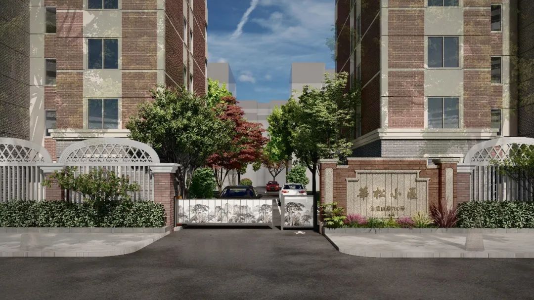 华松小区地理位置特殊,四面都是街道马路,大大小小的入口共有5处。而且小区大门形象老旧,缺少识别性,未设人行门禁。本次改造将对各大门现有门卫房、门头及部分围墙将进行修缮及美化。