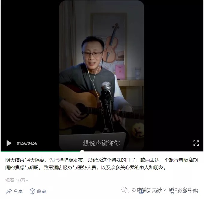 2021年9月,罗店镇第三社区卫生服务中心正式接管集中医学观察隔离点,该歌曲作者在顺利完成了为期14天的集中封闭医学观察,即将解除隔离之际,发布了该歌曲,并致敬酒店服务与医务人员。为让隔离人员度过有爱和温暖的隔离时光,工作人员用规范的管理和周到的服务把“隔离不隔爱”的温情送到每位隔离人员身边。