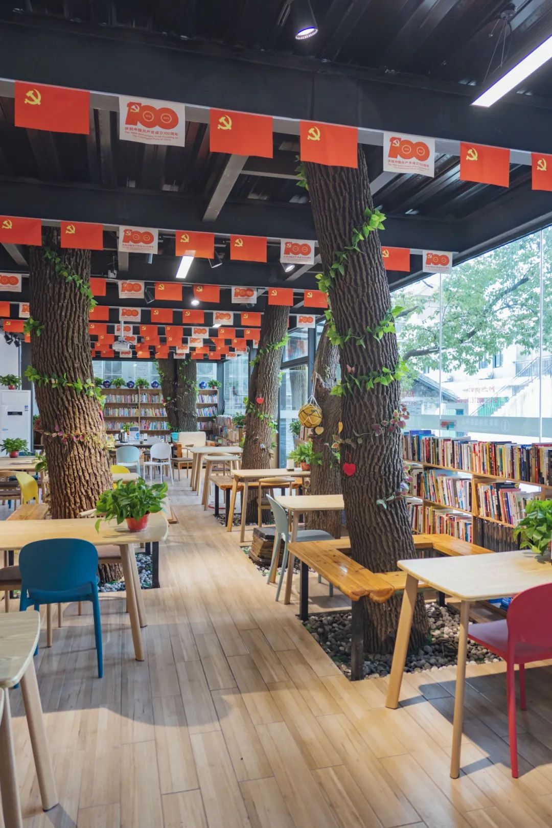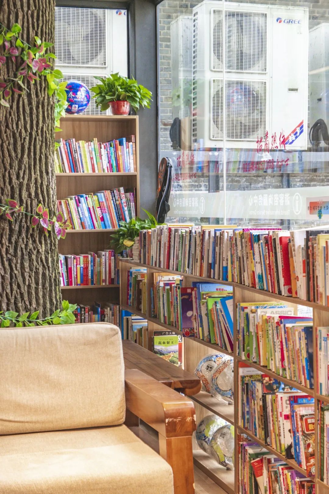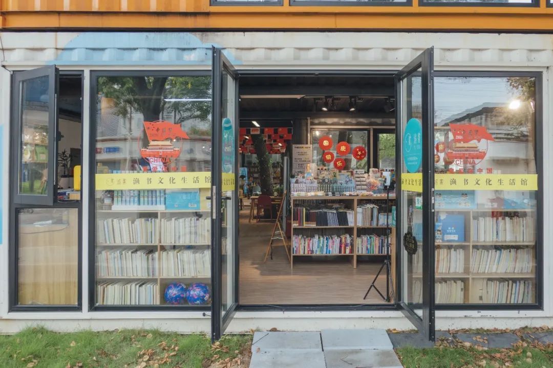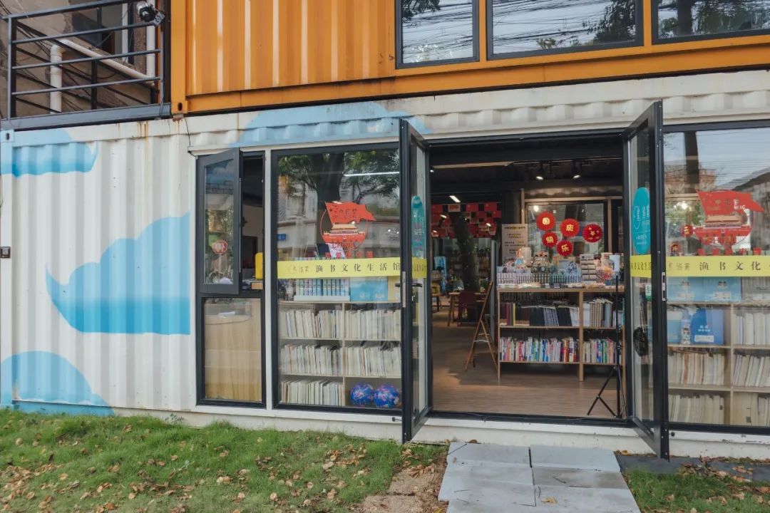 云间粮仓东门集装箱内,有一间渔书文化生活馆。店内不仅有丰富的书籍、文具、运动用品、饮品等,还可以坐在树下沉浸式学习,感受片刻宁静,周末更有丰富多彩的小课堂。