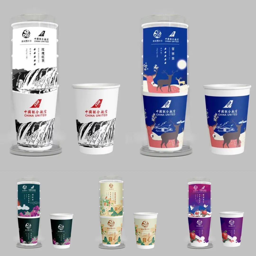与中国联合航空联名打造“中国云端城池系列彩绘杯泡茶”,以中联航旗下安顺、庆阳、包头、兴义、日照五架城市彩绘飞机为主题,通过“东航那杯茶”,传播地方茶文化。