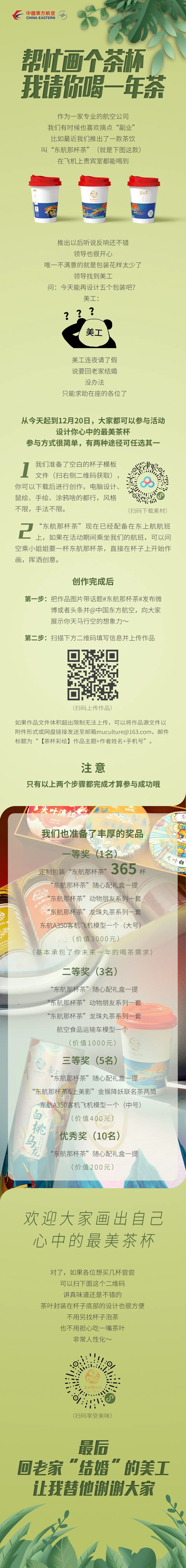 品一口好茶,闻一缕茶香,将传统茶饮与环保科技相结合,破解神秘味觉密码,东航让世界简单喝好茶。东航那杯茶杯身采用食品级环保纸杯易降解,内壁PE淋膜无毒无蜡耐高温,利用物理压封专利技术隔离茶叶,注水即饮,可反复冲泡,健康环保。而在杯身的外观设计上,东东则巧妙地注入了国风巧思。