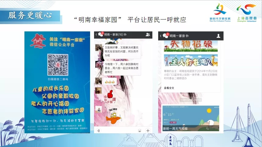 如今,志愿服务行动已发展到“亲子共成长”“爱心伴夕阳”“邻里守望相助”等五大公益服务项目,服务内容瞄准的正是育儿、养老、睦邻、安全和健康这五个群众反映最突出的诉求,并推出两大线上平台,实现服务“触手可及”。