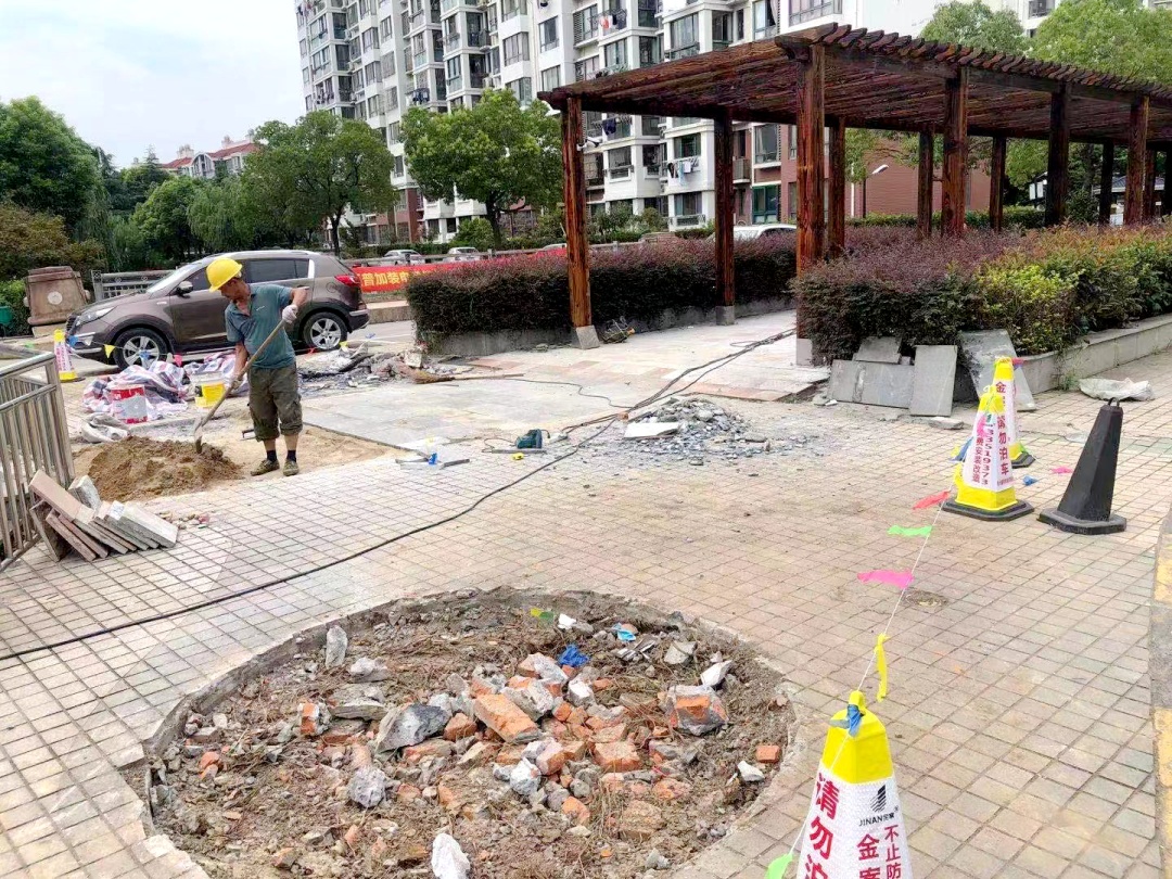 “把喷水池及周边花坛改建成休闲长廊