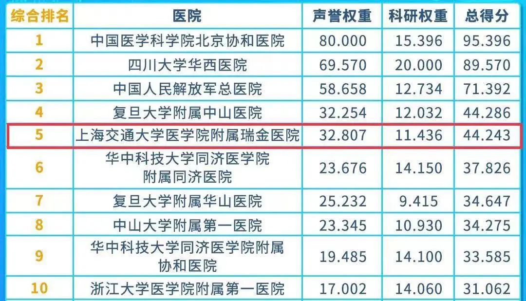 近日,复旦版《2020年度中国医院排行榜》和《2020年度中国医院专科排行榜》公布,上海交通大学医学院附属瑞金医院排名全国第五。