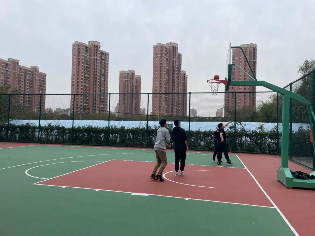 如何恢复球场功能,同时满足停车需求。经过多次实地勘察,球场改造提升方案最终出炉——整个篮球场向南移动约10米的距离,与南侧的门球场共享同一片围网,并在新浇混凝土地坪后,安装了拼装的塑胶篮球场。这样一来,篮球场重新启用,停车位也得到了最大的保留。