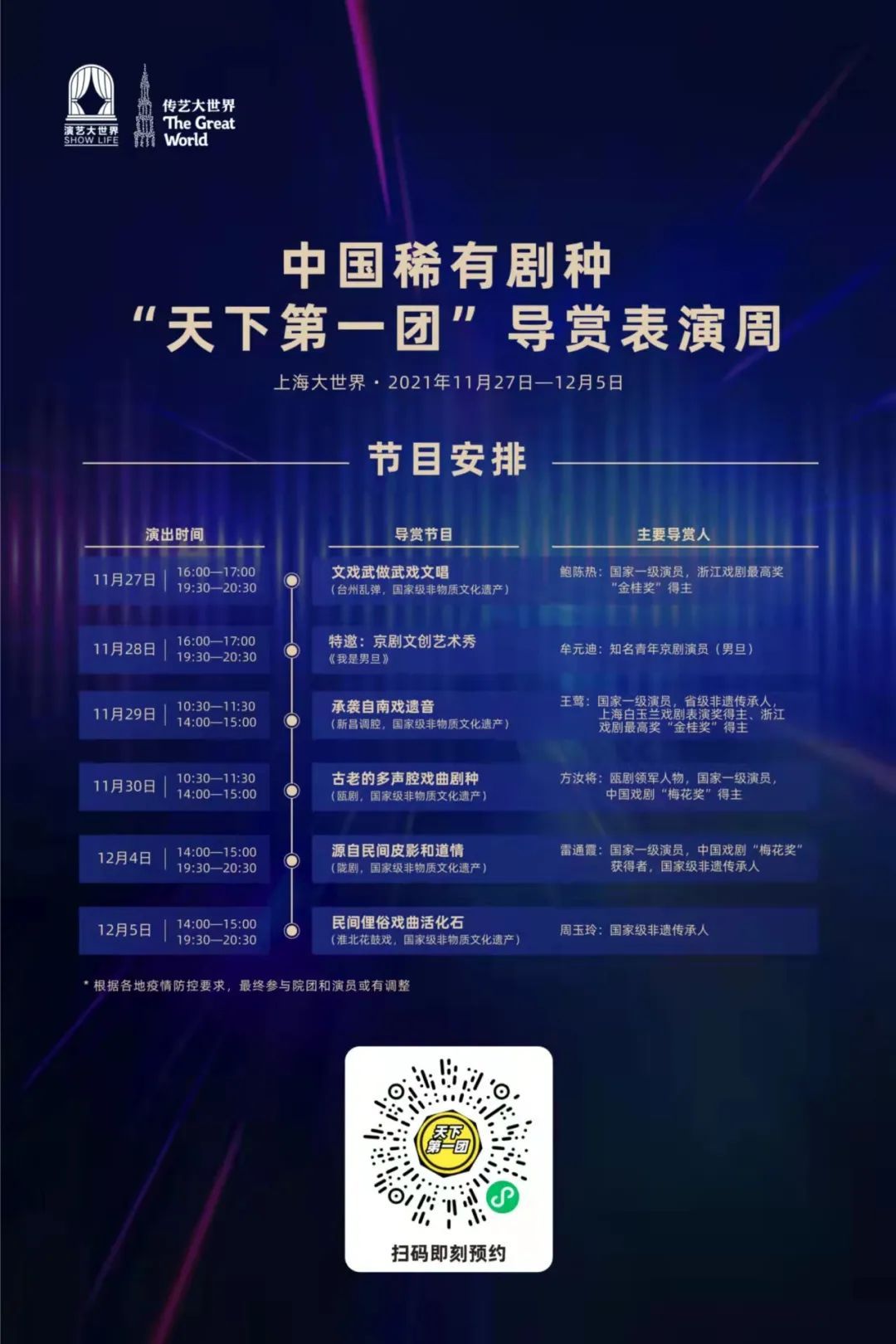 众多“梅花奖”得主、国家一级演员、国家级非遗传承人参与,讲解+表演+互动的导赏观演模式——“中国稀有剧种‘天下第一团’导赏表演周”活动,11月27日至12月5日将在上海大世界举行,期待为传统稀有文化提供新表达新玩法,让中国稀有剧种走进新时代。